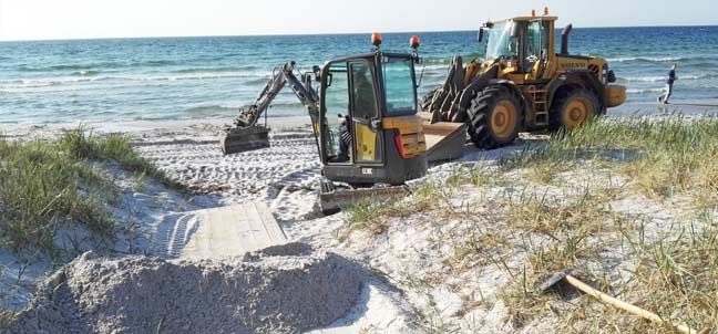 Första två veckorna i maj kör vi för fullt för att hinna med alla strandåtgärder. Tångrensing, harvning, utläggning av sand, rensing strandspänger, utsättning utrustning mm. Mycket ska hända på kort tid! Men fint blir det! Vår erfarenhet av maskinarbeten i känslig natur ställer krav på både förare, maskin och ledning.
